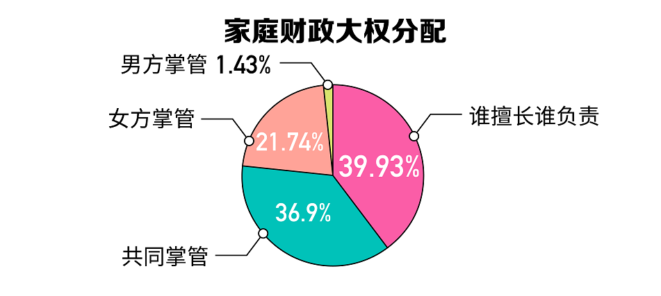 39.93%的90后赞同谁擅长理财则谁掌握家庭财政大权,36.81%的单身男女赞成共同掌管家庭财政权,21.74%的单身男女赞同较传统的女方掌管财证权的观点,只有1.41%的单身男女支持男方掌管财证权。男女双方共同投入时间与精力参与管理家庭财政的情况有可能成为新趋势。