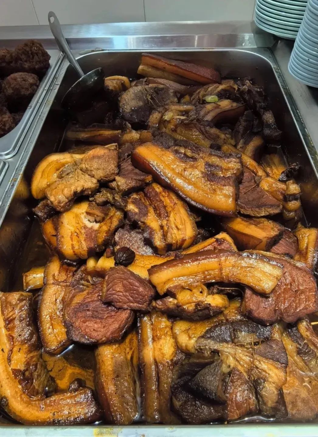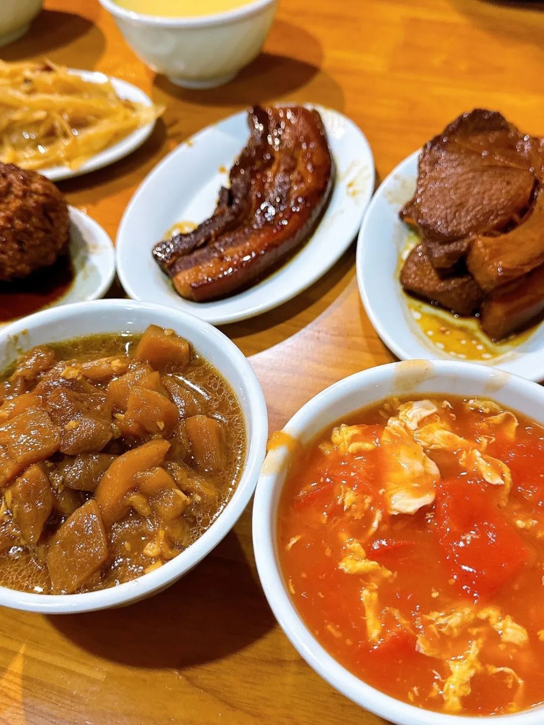 诞生于济南七中十字路口的把子肉,曾经叫赞渝把子肉,搬到山大南路后更名为“老七中把子肉”。味道还是相当不错的,辣子鸡和西红柿炒鸡蛋也很好吃~