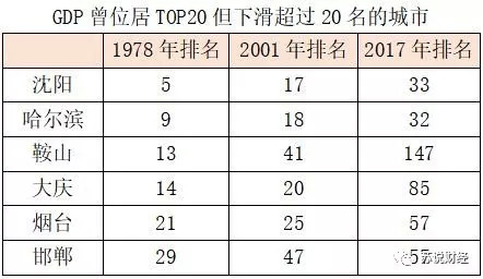 身为石油摇篮的大庆,GDP排名从1978年的第14位下滑至2017年的第85位;而作为共和国钢铁摇篮的鞍山,更是从第13位跌落至147位。