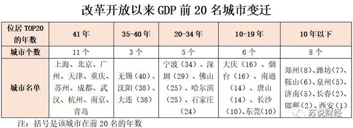 我们分析了1978年以来GDP位居TOP20的城市,41年变迁,风起云涌。
