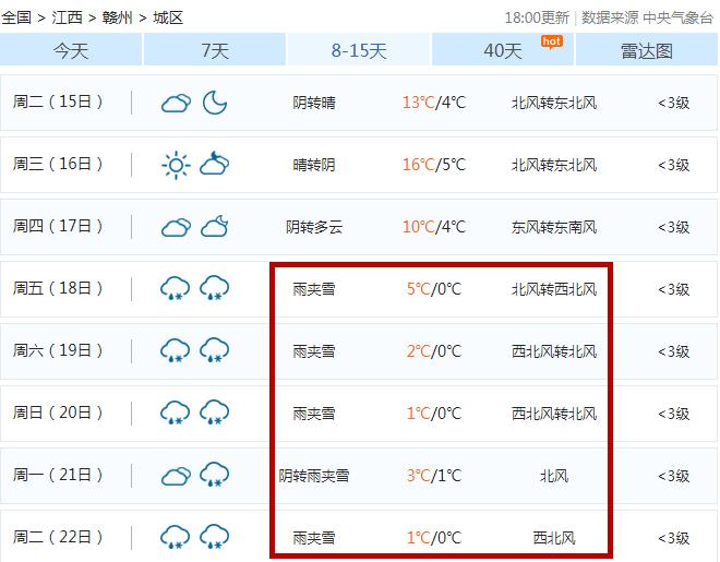 接下来,赣州连续5天雨夹雪?跌至0℃?答案来了……