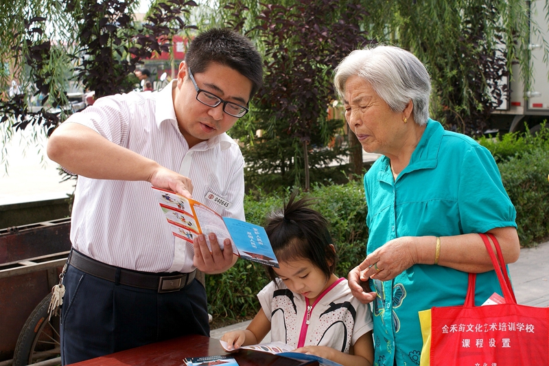 日前,中国银行河北承德分行辖内各机构纷纷走进社区、商圈,开展“普及金融知识,守住‘钱袋子’”宣传活动。图为该行工作人员在社区向居民讲解防范“电信诈骗”“非法集资”知识。 (本报记者 刘志良 通讯员 闫凌锋 摄)