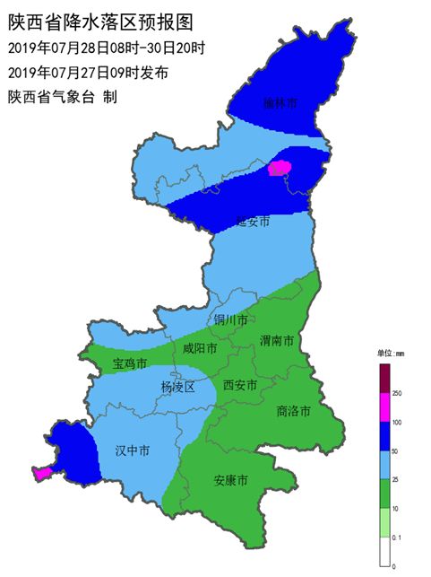 最新预报显示,受副高外围暖湿气流和冷空气共同影响,7月28-30日陕西省自北向南有一次明显降水天气过程,主要降水时段在28日下午到29日白天。此次降水过程,预计陕北、关中西部、陕南西部有中到大雨,关中东部、陕南东部有小到中雨,其中陕北部分地方和汉中西部有暴雨,局地有大暴雨,并伴有雷电和短时强降水。