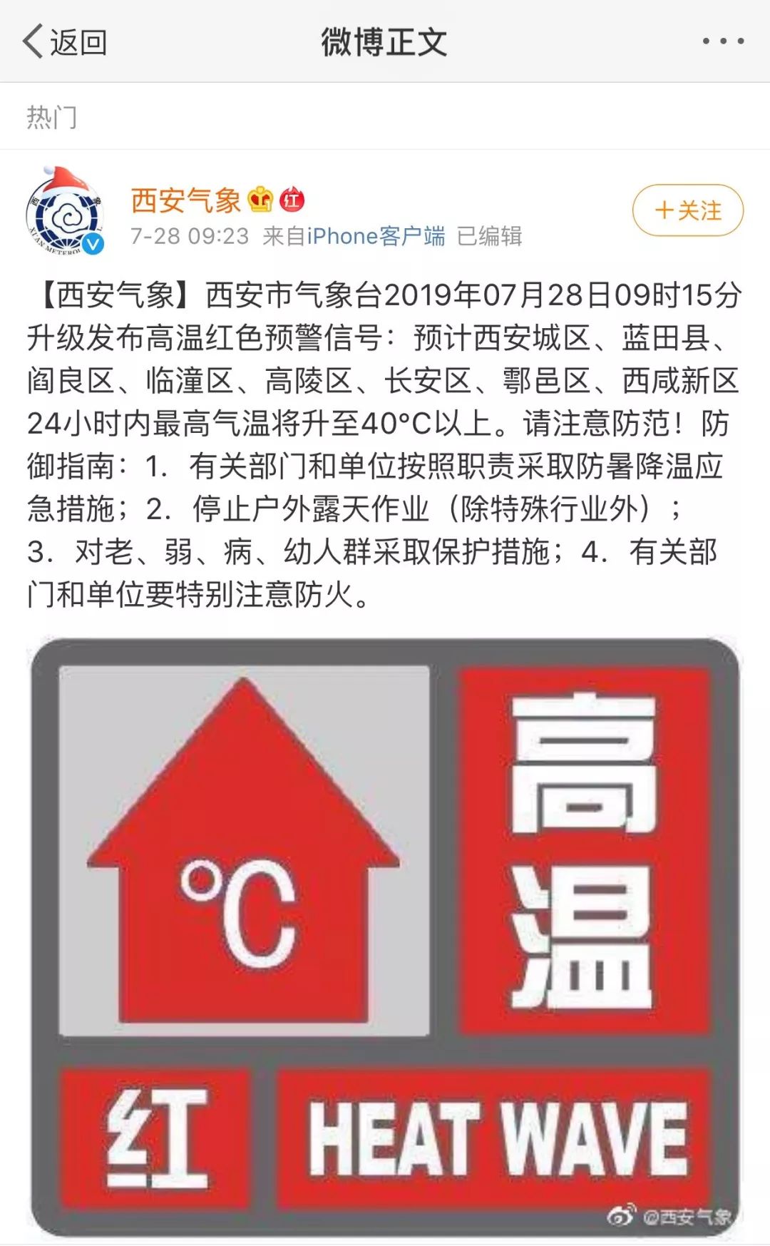 西安发布高温红色预警 最高气温40+℃!还要热多...