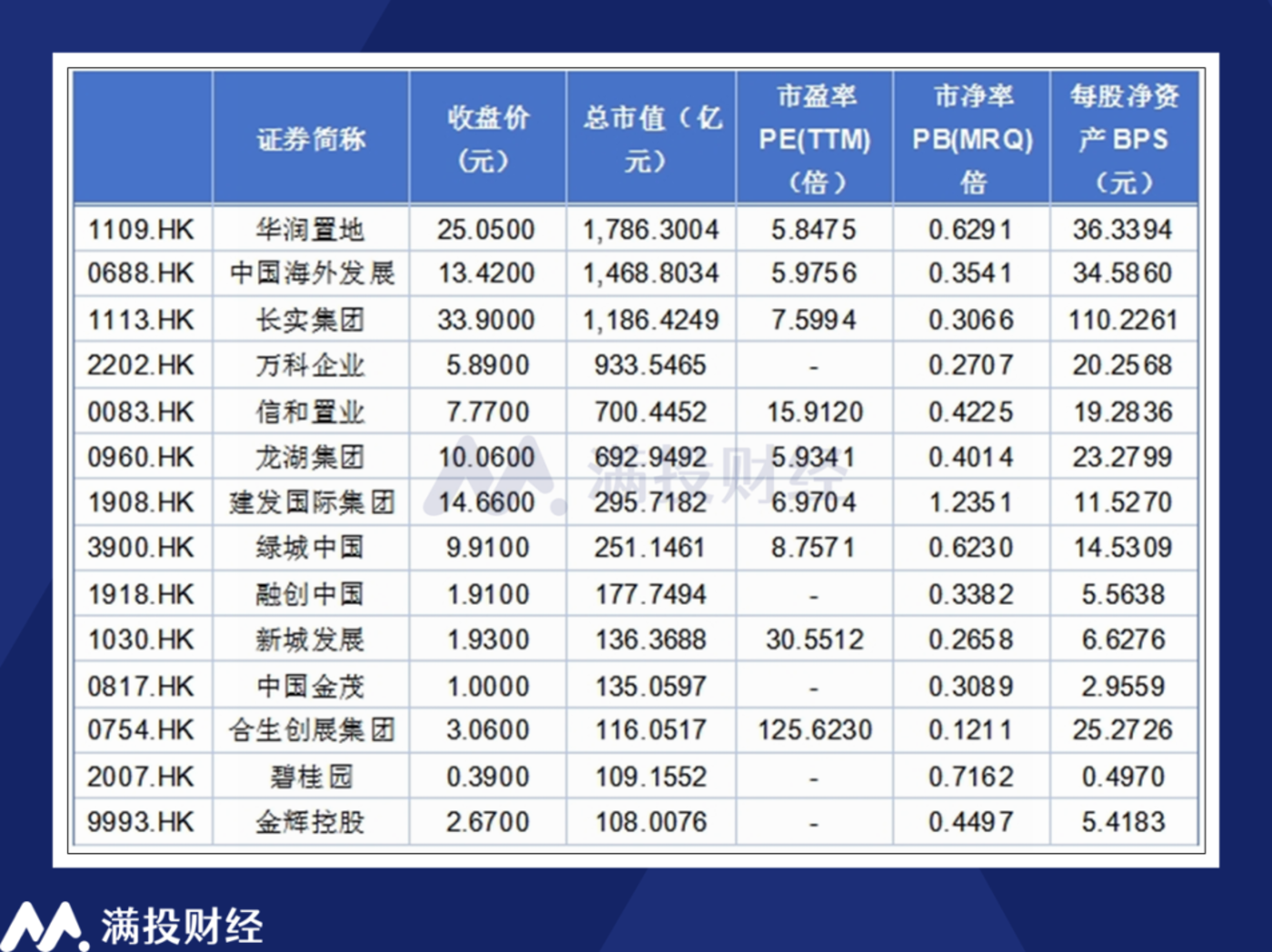 而在房企股票相关的投资上,根据笔者此前的统计,截至2月21日,港股市场中市值超过100亿元的房地产开发上市公司共有14家,仅有一家公司未处于破净状态。在经历三年的下跌后,有些公司的每股净资产甚至数倍于其股价。而在A股层面,其环境也大差不差,除了资产特别优秀的国企公司多数公司的估值已然处在底部。随着地价/房价维稳,影响公司的估值逐渐稳定,其股价走势或许也会迎来好转。