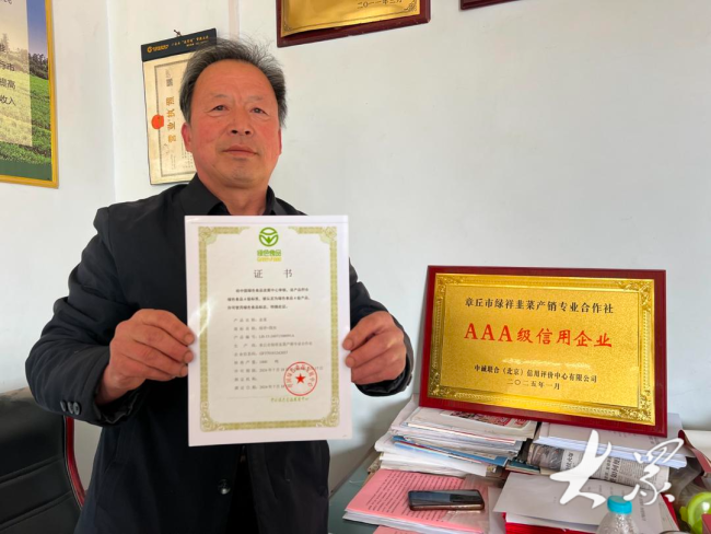 刁镇街道,柴家韭菜以株壮、叶肥、质优味美的品质闻名。村党总支书记柴永清告诉记者,2000年,柴家村注册了“绿祥”商标,同年绿祥韭菜被认定为山东省无公害农产品,2004年通过首批国家无公害农产品认定。2024年,绿祥韭菜基地被认定为省级农业标准化生产基地,绿祥韭菜产销专业合作社申报获得绿色食品证书。