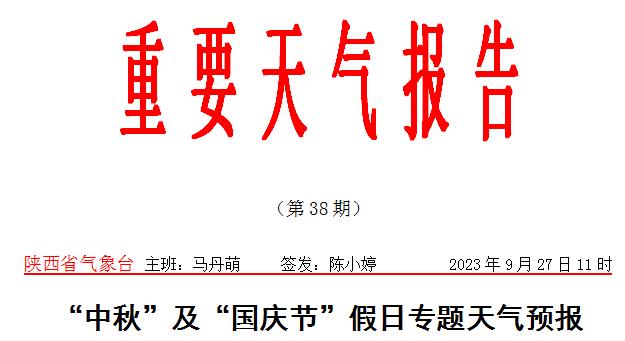 原标题:《“中秋+国庆”降雨时段确定!陕西发布重要天气报告》