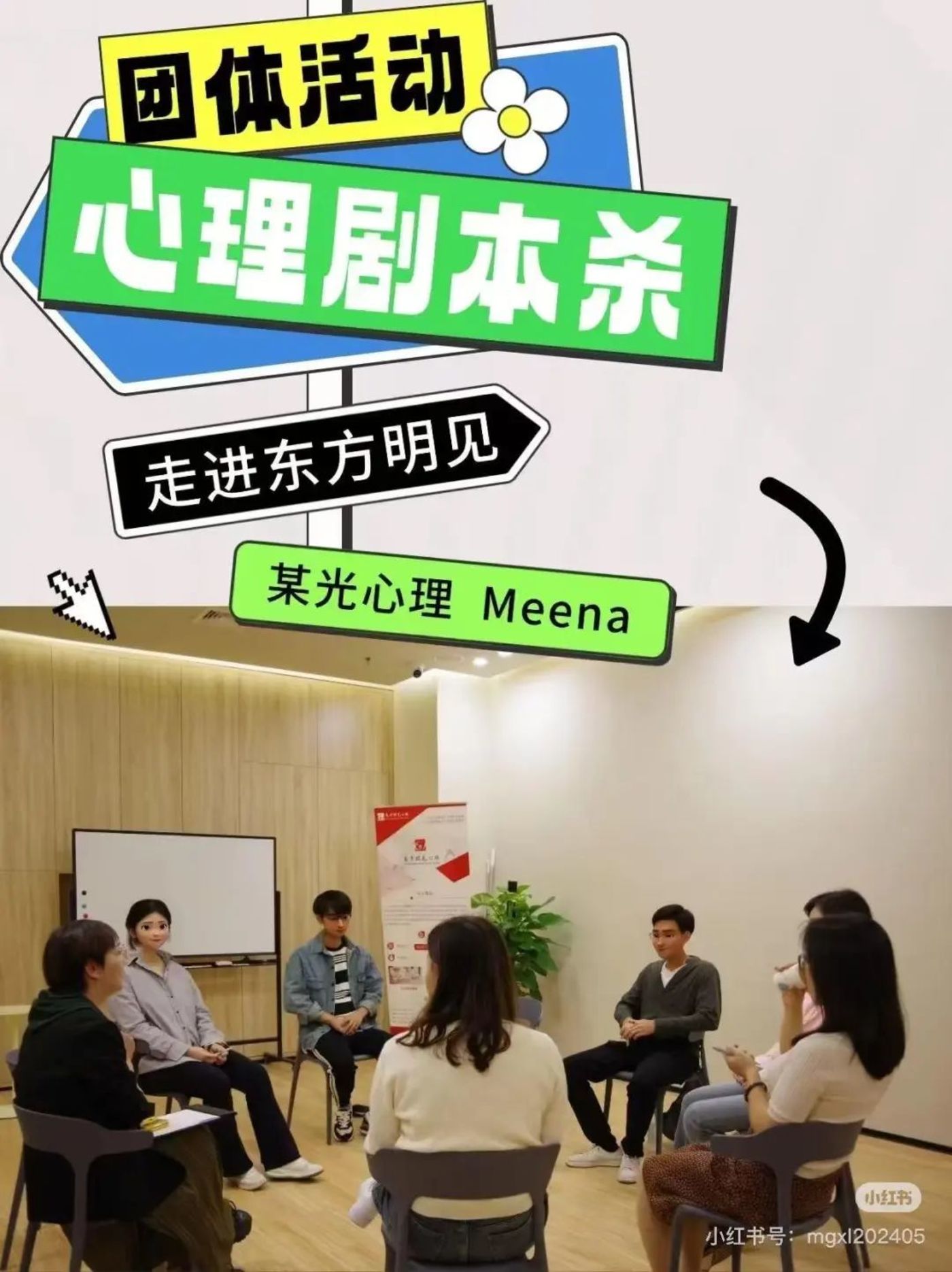 和普通剧本杀一样,心理剧本杀也需要参与者面对面进行交流。在专业心理咨询师的带领下,参与者在一个情景中游玩类似狼人杀的游戏,不断根据话题交流的感受进行淘汰。游戏结束后,心理咨询师带领大家复盘整场游戏,让参与者觉察自己的人际互动模式。