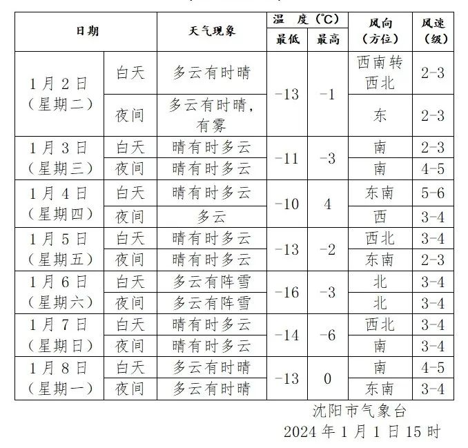 沈阳明早有雾,出行请注意!周六将迎来2024年第一场雪!