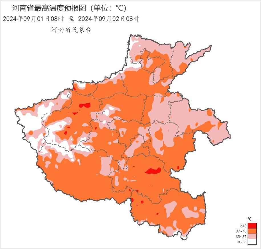 9月1日,全省多云转阴天,淮河以北大部有阵雨、雷阵雨,西部、北部、中东部部分县市有中到大雨,局部暴雨并伴短时强降水、雷暴大风等强对流天气。全省大部最高气温可达37到39度。