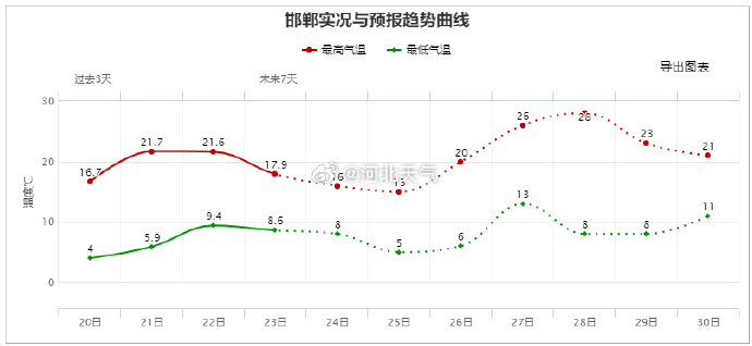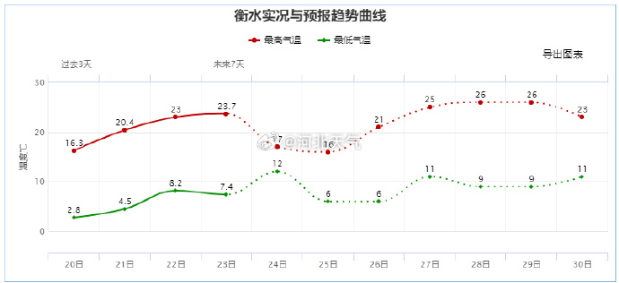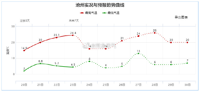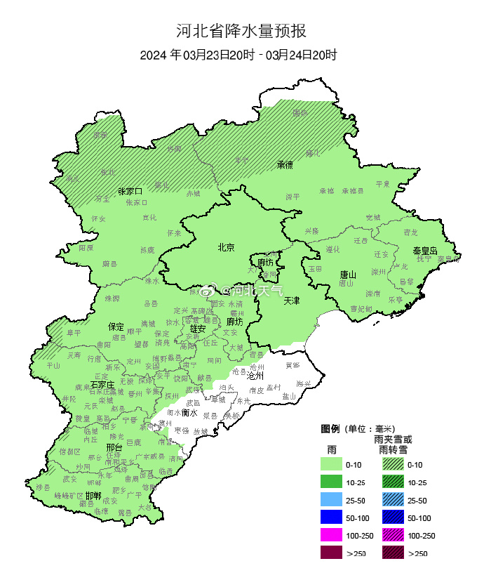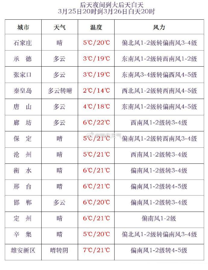 明天夜间到25日,全省阴转多云,保定、廊坊及以南地区有小雨,其中邢台南部、邯郸局地有中雨。