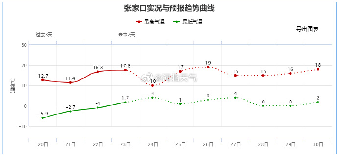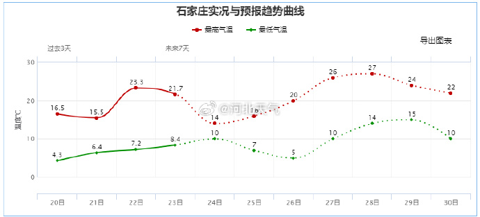 今天傍晚到夜间,张家口、保定西北部阴有小雨或雨夹雪,石家庄西部、邢台西部、邯郸西部多云转阴有零星小雨或小雨,其他地区晴转多云。最低气温,张家口、承德、保定西北部、唐山东部、秦皇岛-4~4℃,其他地区5~10℃。