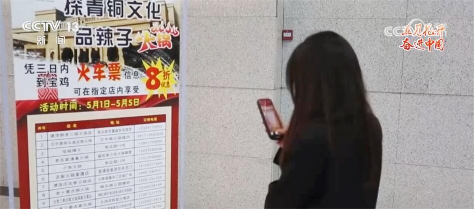 在素有“青铜器之乡”的陕西宝鸡,宝鸡东站提前与地方文旅、商务部门对接,推出一系列具有地域特色的美食打卡地,旅客可以通过乘车信息,在3天内在宝鸡市内34家辣子火锅会员店享受8折优惠,全方位体验油泼辣子和铜锅的完美结合。