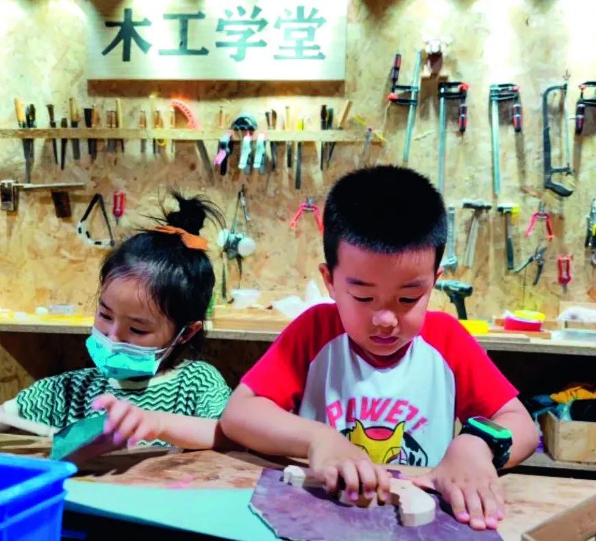 孩子们在朱家湾村终南山寨木工学堂体验。