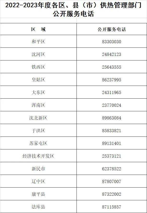 沈阳供热相关部门的服务电话