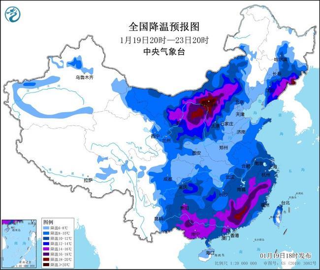 就在昨晚,中央气象台也发布2024年首个寒潮预警,预计20日至23日,内蒙古中部和河套地区、陕西北部、山西北部、河北西北部、吉林东南部、辽宁东部、江西南部、浙江南部、福建中西部、贵州南部、广西、广东等地部分地区降温14~16℃,局地可超过18℃。