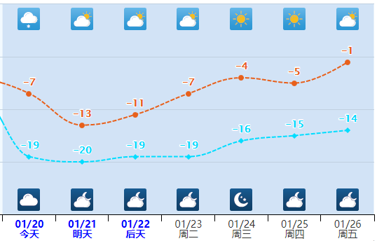22日早晨,保定、廊坊及以北地区最低气温降至-24~-15℃,其中张家口北部、承德北部-32~-25℃,其他地区-14~-9℃。请防范!