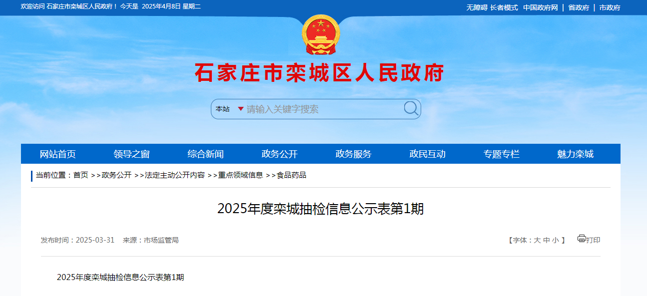 2025年石家庄市栾城区市场监督管理局食品监督抽检合格信息公示表第1期