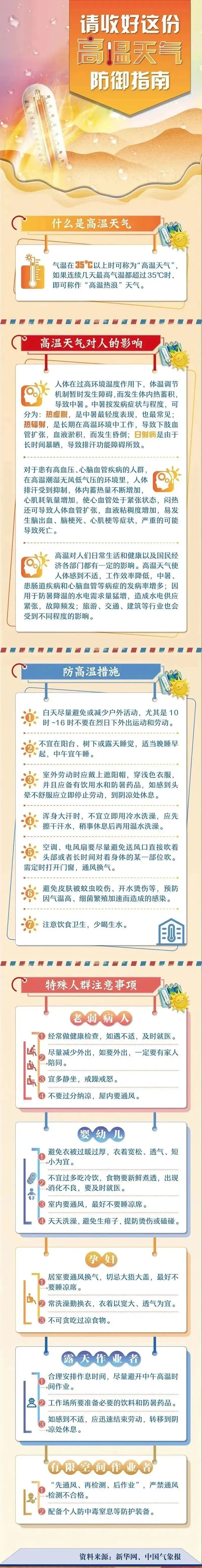 预计今天午后下述地区最高气温将升至40℃以上:安康市汉滨区、白河县,宝鸡市渭滨区、金台区、陈仓区、岐山县、扶风县、眉县,汉中市西乡县,商洛市山阳县、镇安县、柞水县,渭南市临渭区、华州区、华阴市、大荔县、蒲城县、澄城县、合阳县、潼关县,西安市未央区、新城区、碑林区、莲湖区、灞桥区、雁塔区、阎良区、临潼区、长安区、高陵区、鄠邑区、西咸新区、蓝田县、周至县,咸阳市渭城区、秦都区、兴平市、三原县、泾阳县、乾县、礼泉县、武功县,杨凌杨凌区,请各级相关部门和行业切实加强高温防范工作的组织管理,落实重点行业领域高温时段安全生产措施,统筹安排调度民生安全保障措施。