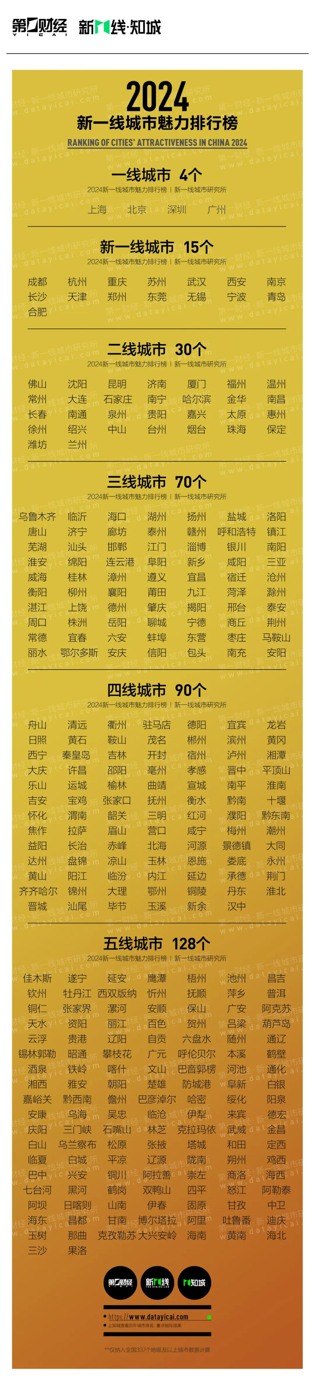 第一财经·新一线城市研究所今日发布“新一线城市魅力排行榜”,结合新一线城市研究所自有的商业和产业大数据,围绕商业资源集聚度、城市枢纽性、城市人活跃度、新经济竞争力和未来可塑性五大一级维度来评估337座地级及以上城市的综合魅力表现。