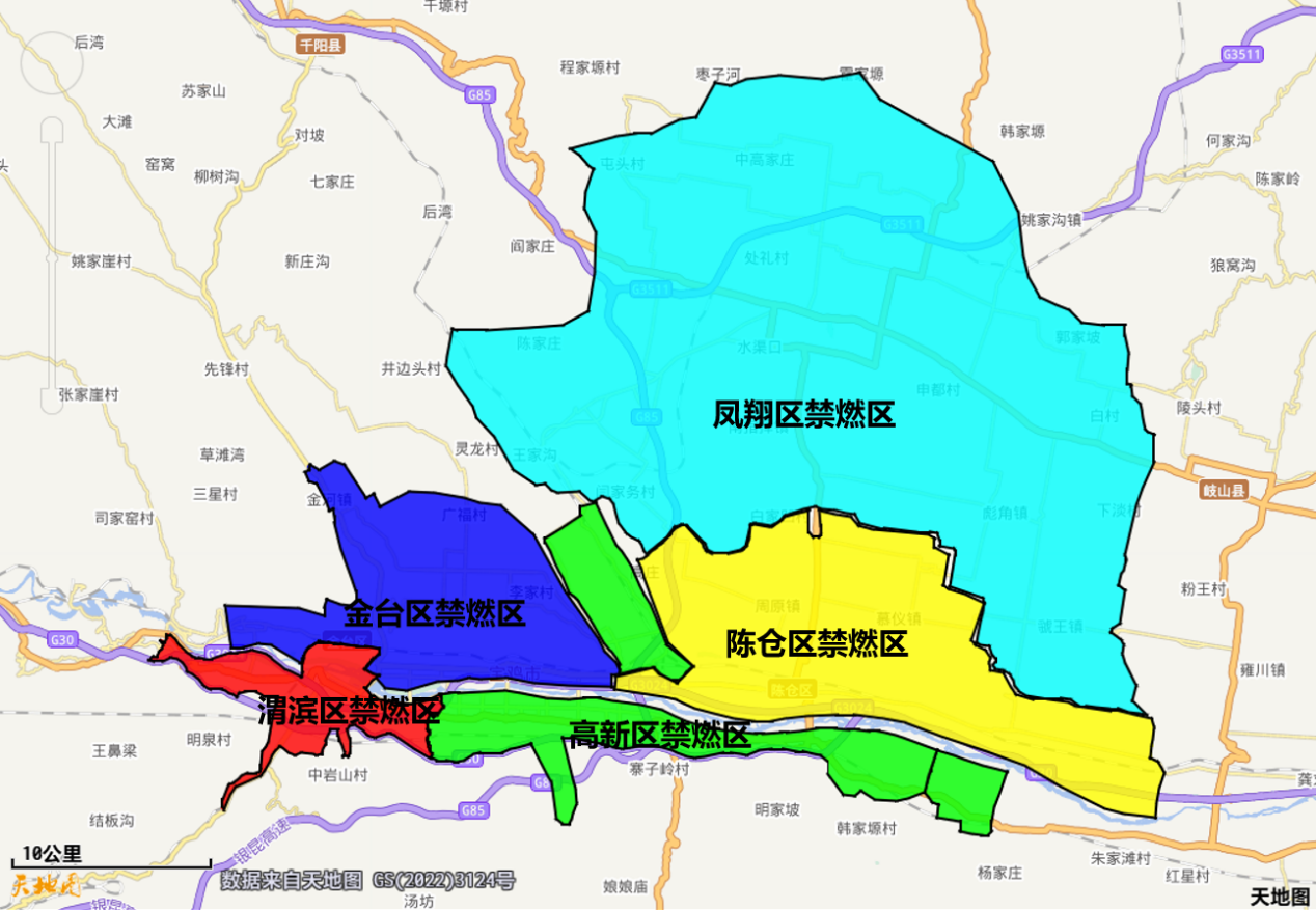 (四)高新区禁燃区范围:东至毛家沟;西至茵香河;南至宝钛集团老厂、天王村;北至千河镇王家崖水库坝面。总面积116.85平方公里。