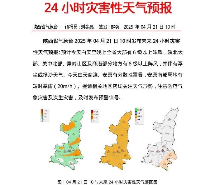 西安市气象台今天(4月21日)10时27分发布大风蓝色预警信号。