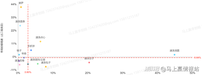 市场份额同比变化上,思念、广州酒家和五丰同比增长,而三全和安井则面临市场份额同比下滑,速冻包子类目头部企业竞争分化或在加剧当中。