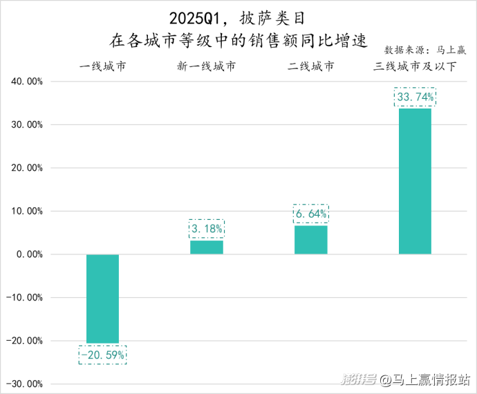 尽管披萨类目所占市场份额和销售额整体规模都不大,但在各地区中的销售额同比增速都优于其他类目,所有地区销售额同比增速均为正。但具体来看,区域差异十分显著,西南地区以108.99%的同比增速爆发式增长,东北地区和西北地区也紧随其后,华中地区以22.27%的同比增速稳健增长,而华北、华东和西南地区则相对滞后。