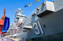 这是4月22日在海南省澄迈县马村港散货码头拍摄的海军海南舰(无人机照片)。4月22日,在海南省澄迈县马村港散货码头,海南省为海军海南舰举行欢迎仪式,欢迎海南舰“回家”。