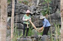 4月21日,广西马山县金钗镇龙印村村民在铺设水管,准备将当地政府送来的水引进水柜。自治区水利厅决定自4月19日18时启动旱灾防御三级应急响应,各地正积极采取措施,全力做好抗旱工作。