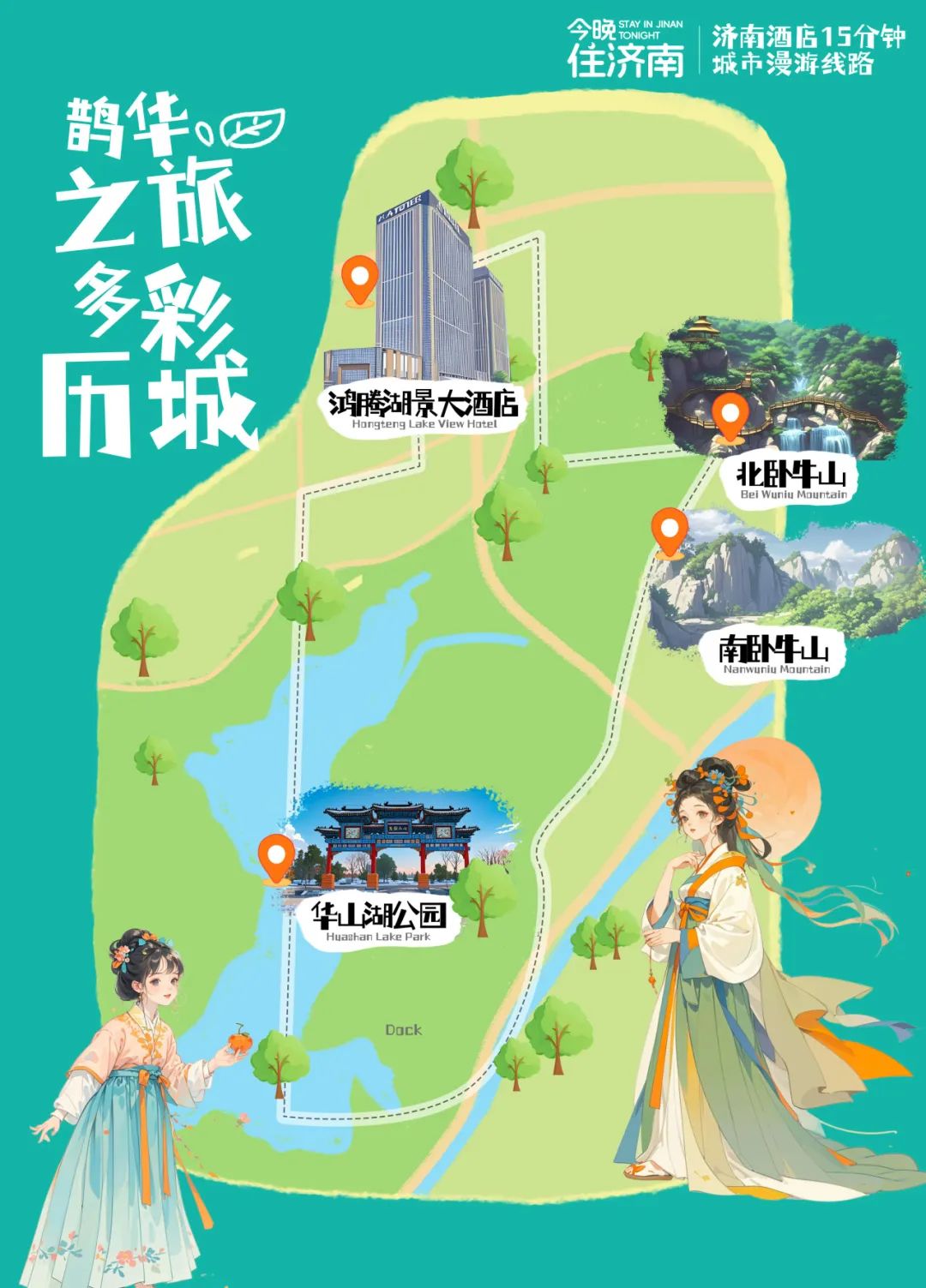 从酒店出发,开启一场饱览山川湖泊秀丽风光的城市漫游。北卧牛山,卧牛遗韵、森林雾语、香漫溪涧,山石、水景、植被交融,地质奇观尽显。南卧牛山,观生态修复的自然之美,步道攀援,绿荫蔽日,空气清新,野花烂漫,自然之美无处不在。华山湖公园,向您展示现实版的“鹊华秋色图”。风光旖旎,景色醉人,济南北城山水瑰宝,仿佛是从元代画家赵孟頫的《鹊华秋色图》中走出来的。