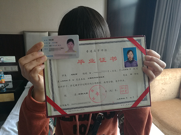 刘红丽的毕业证书、学士学位证书显示,2004年7月1日,她从河南大学(计算机科学与技术专业,四年制本科)毕业,被授予工学学士学位。