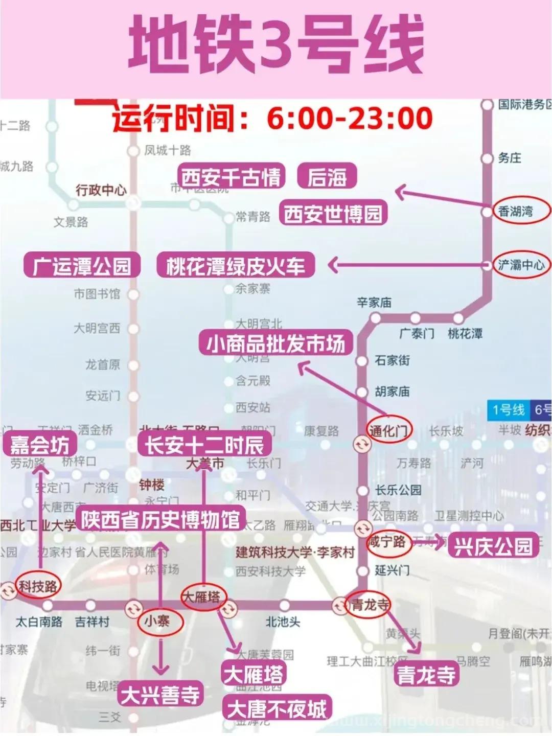 西安地铁3号线景点分布图