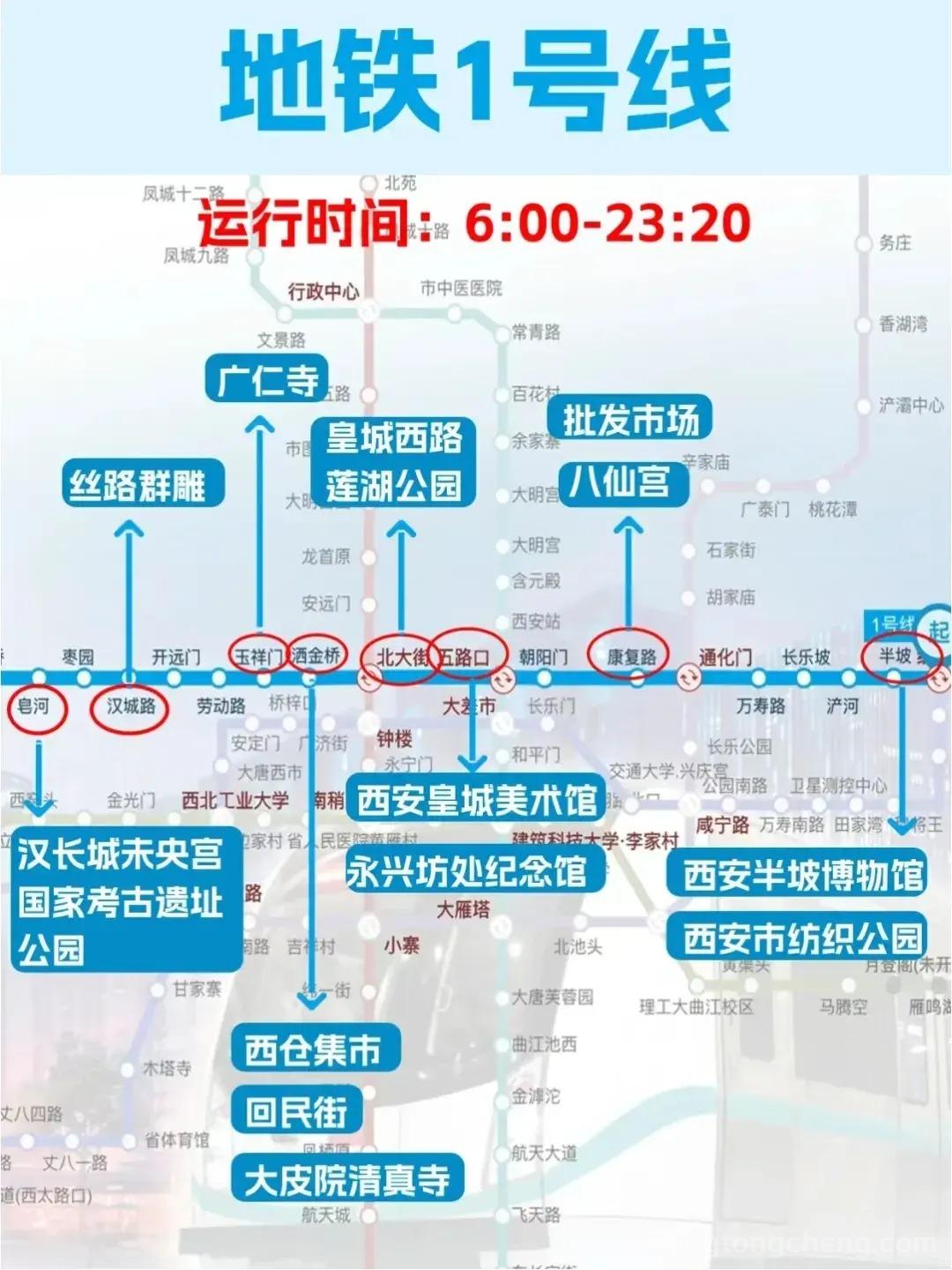 西安地铁1号线景点分布图