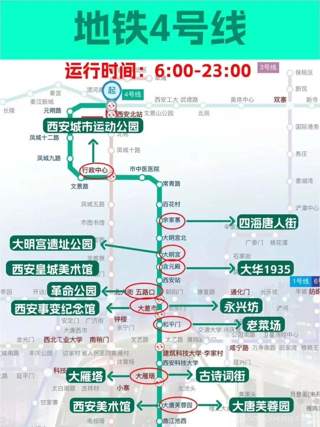 西安地铁4号线景点分布图