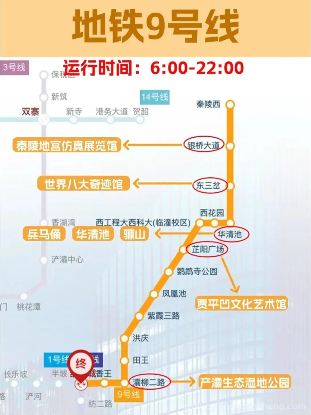 西安地铁9号线景点分布图