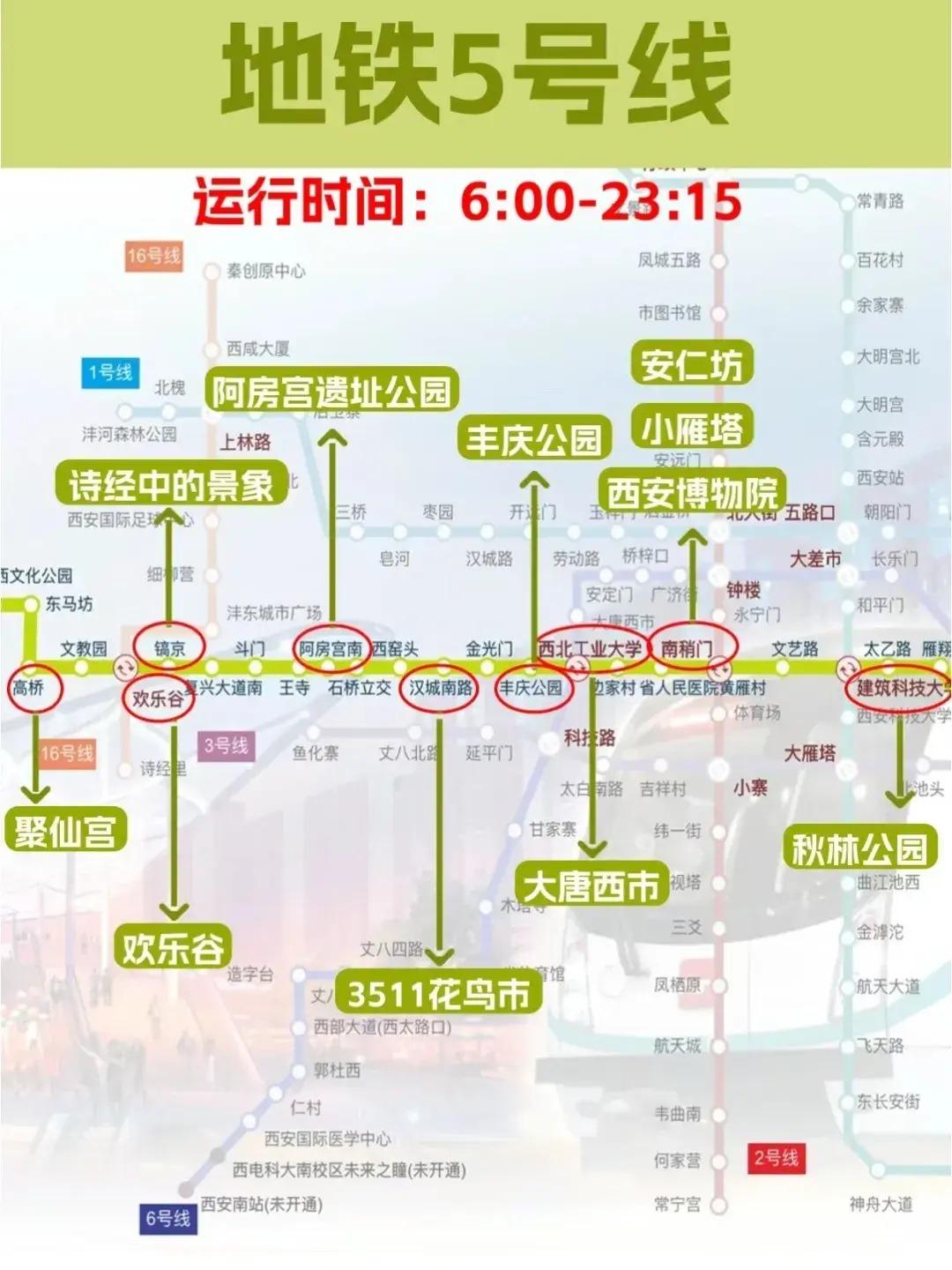 西安地铁5号线景点分布图