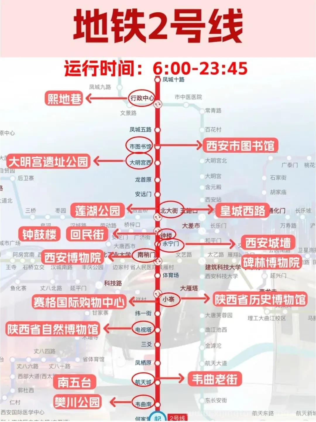 西安地铁2号线景点分布图