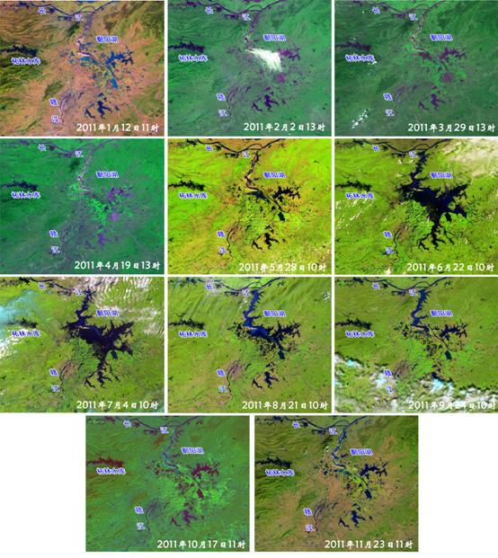 图12 气象卫星鄱阳湖水体变化监测图像(2011年1月至11月)