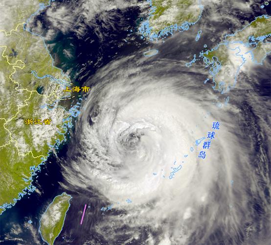 热带气旋“梅花”影响我国东部沿海地区2012年第9号热带气旋“梅花”于8月3日凌晨再度加强为超强台风,09:40的FY-3A气象卫星监测图像上可以看到,“梅花”结构对称,主体云系十分紧密,螺旋云带清晰(图2)。
