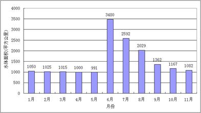 图13 卫星遥感鄱阳湖逐月水体面积统计(2011年1月至11月)
