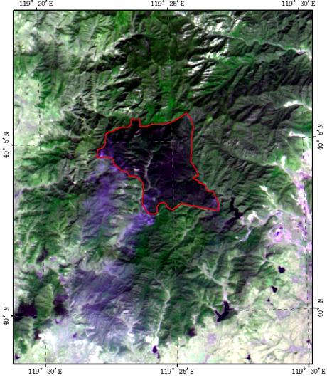 图19 HJ/CCD河北省秦皇岛市抚宁县林火过火区监测图2011年4月15日10:43(北京时)