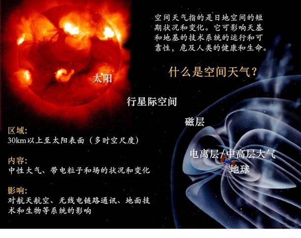 空间天气是指太阳、行星际、磁层、电离层的物理状态。空间天气的状况对空间卫星、空间作业的宇航员、通讯、地面电力设备、石油管道等都会造成危害。国家空间天气监测预警中心就是利用空间卫星和地面的监测设备对太阳活动、磁层、电离层环境进行监测,对突发性的和长期存在的恶劣空间天气进行监测与预警并开展相关的研究,为国家的航天、国防、地面设备的安全等提供及时准确的预警预报服务。