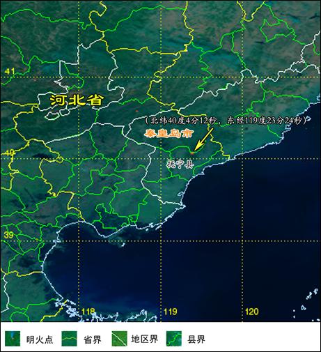 图17 气象卫星河北省秦皇岛市抚宁县火情监测图2011年4月12日13:54(北京时)