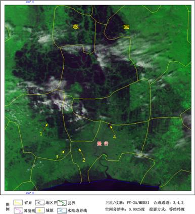 图4 FY-3A气象卫星监测图像2011年8月6日 10:20 (北京时)