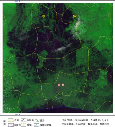 图15 FY-3A/MERSI泰国水情监测图(2011年11月12日)
