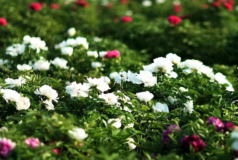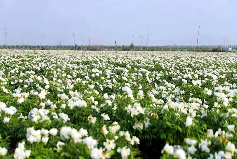 万亩牡丹竞相绽放,洁白典雅的白牡丹花在微风中摇曳生姿,尽显国色天香。