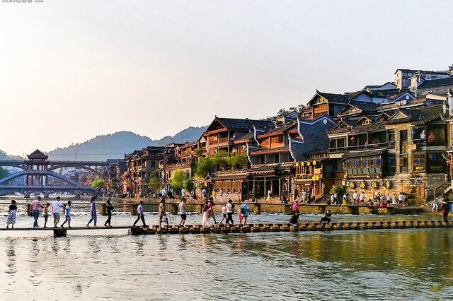 凤凰古城位于湖南省湘西的西南部。古城建于清康熙时期,因沈从文的小说《边城》而闻名于世。古城依山傍水,沱江穿城而过,红色砂岩砌成的城墙伫立在岸边,南华山衬着清朝年间的城楼。古城里北城门下的河面上,横着一条窄窄的木桥,以石为墩,是当年出城的通道。城内的青石板街道、沱江边的吊脚楼、众多的古建筑以及浓厚的风情,构成了独具一格的湘西韵味,主要景点有沈从文故居、古城博物馆、崇德堂等,值得游览。凤凰古城游玩攻略>>