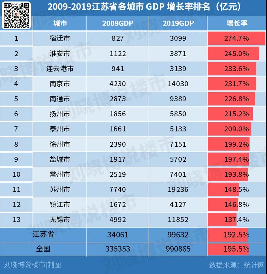 在江苏省,2009年到2019年的增长冠军被宿迁这个寂寂无名的地级市夺得。
