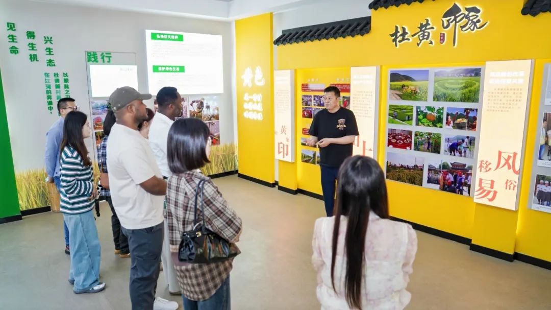 走进杜黄新村,中外青年被眼前的共富图景深深吸引:五色展厅各类农副产品记录着村庄发展的足迹,大型无人机正在水稻田上作业,村民们忙着布置小番茄基地以迎接“五一”客流……作为省级未来乡村试点,杜黄新村通过2400亩良田土地流转提升村集体经济,吸引农创客参与村庄经营,打造八卦田、蔬果采摘园、稻梦空间等网红打卡点,并借助电商力量,将珍珠等特色产品销往全国各地,为共同富裕奠定了基础。俄罗斯姑娘阿薇在露天营地拍照打卡后,又兴致勃勃地品尝起村咖特色饮品。“原来中国的乡村可以这么时尚!”她一边发朋友圈一边感叹。中外青年在田间地头体验采摘乐趣,在村咖分享调研收获,近距离感受基层治理与产业共富的生动实践。